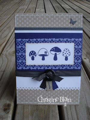 Again, I have used a Crumb Cake base, and polka dots - two of my favourites! Here is what I came up with, using the cute toadstool stamp from "Funky Four":