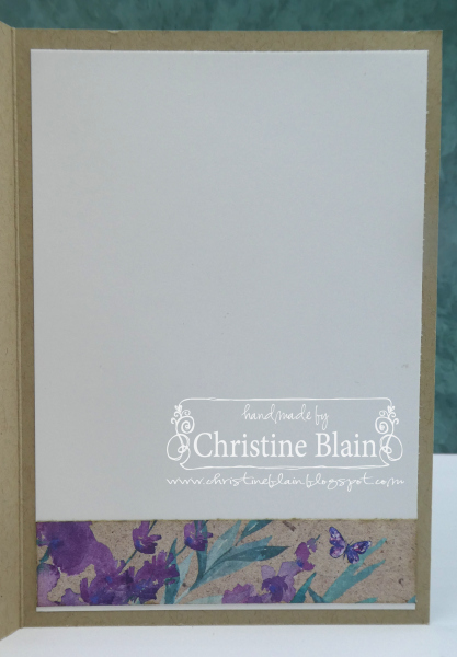 Inside the card, I added a Basic White card panel, with a strip of the same DSP used on the front of the card (having sponged the edges first with Crumb Cake ink).